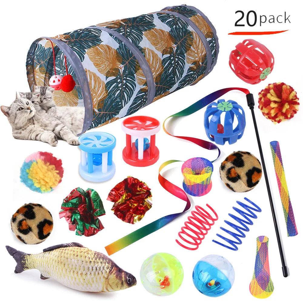 Combo Cat Toys: Mouse Shape Balls, Foldable Cat Kitten Play Tunnel, Funny Cat Tent, Mouse Supplies, Simulation Fish, Cat Accessories